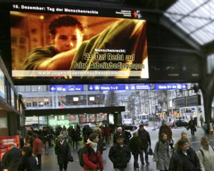 Les spots d’information primés « 30 droits, 30 spots », disponibles en 17 langues, ont été diffusés sur CNN International, Sky News et National Geographic Channel dans plus de 100 pays. Ils sont diffusés dans des bus, des centres commerciaux, des théâtres, des stades, des gares et des aéroports, ou en introduction à des leçons ou à des conférences sur les droits de l’Homme dans des écoles, des centres culturels et autres lieux de cours.