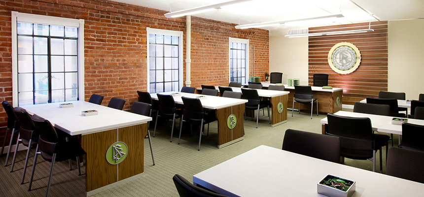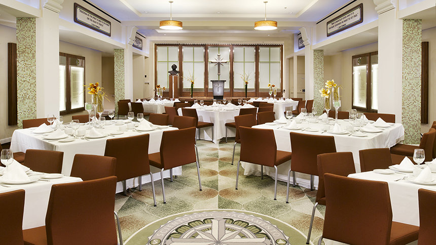 Le nouveau bâtiment de l'Eglise, situé à seulement quelques pas du Capitole de l'États, est l'un des plus éminents monuments de la ville. Connu initialement en 1930 sous le nom d'Hôtel Ramona et conçu par le premier architecte d'États californien, le bâtiment est le plus bel exemple du style néo-colonial espagnol de Sacramento. L'Église a soigneusement préservé la structure de l'édifice et a restauré son aspect pour lui redonner sa gloire d'antan, notamment en conservant son stuc très caractéristique, ses briques vernissées ornementales et ses tuiles en terre cuite, mais aussi ses ouvrages décoratifs en fer forgé et son enseigne d'origine. Toute la restauration a été planifiée et réalisée de manière à entraîner un impact minimal sur l'environnement et pour une durabilité maximale, respectant les normes de certification Or américaines du LEED (Leadership in Energy and Environmental Design) du Conseil du Bâtiment durable.