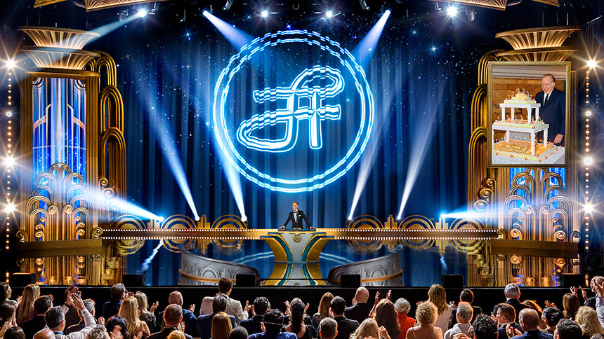 « Donc oui, vous êtes arrivés au cœur d’une célébration d’anniversaire à laquelle le monde entier peut assister, » a poursuivi Monsieur Miscavige. « Et donc, sans exagérer et sans en faire trop… le fait est que LRH est partout ce soir. »